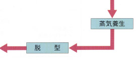 型枠に入れたまま常圧蒸気養生を行い、徐冷したのち脱型します。外観、寸法等を検査し、所定の表示を管体に刷り込み、ストックヤードで養生します。